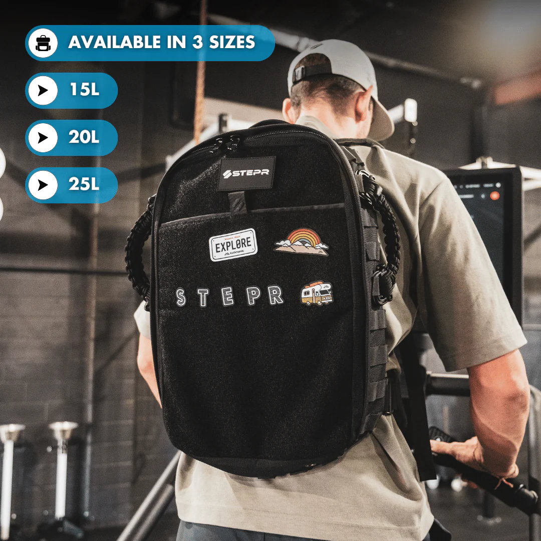 The STEPR ALL-IN RUCK delivers versatile load carrying capability across three capacity options: 15L, 20L, and 25L, engineered for rucking progression at any level. Each ruck bag includes these features: multiple fillable sandbags with up to 40lb capacity, reinforced paracord handles with adjustable positioning for optimal comfort, and stabilizing waist straps to optimize weight distribution and control during extended wear.