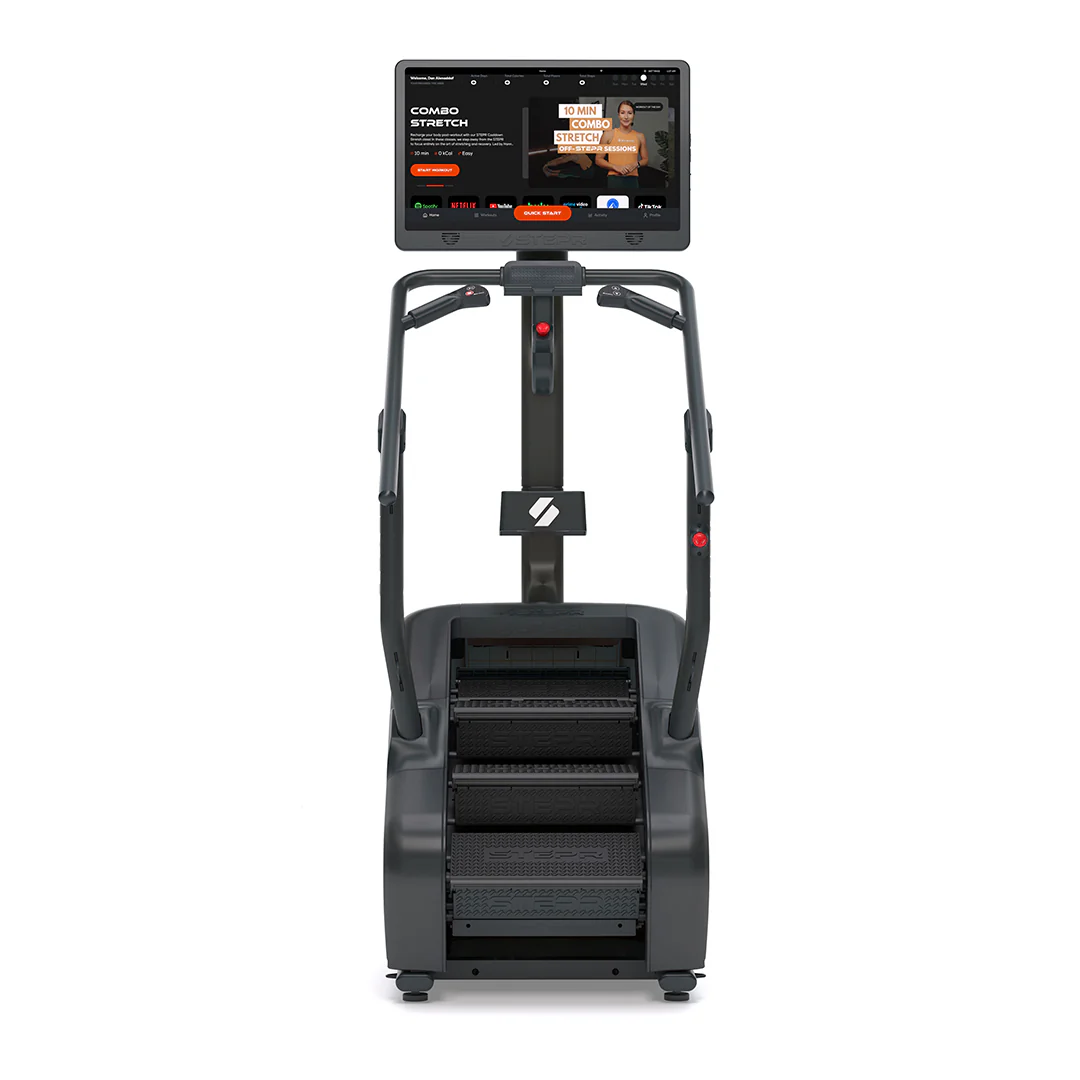 The Original STEPR - the Ultimate Home Stair Climbing Solution. Our space-saving design and compact footprint allow the STEPR to fit into most indoor environments. STEPR fits through standard doorways and only requires regular 8ft ceilings. Our floating Stadium Step design accommodates almost any foot size & STEPR versatile enough for beginners and the most advanced fitness levels.